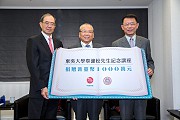 中信金顏文隆董事長(中)透過中信慈善基金會捐贈1000萬元予東大學設置辜濂松先生紀念獎座,東吳大學潘維大校長(右)代表接受,圖左為陳國世副董事長