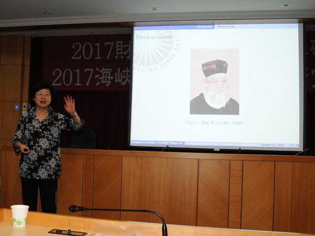 專題報告由紐澤西州立羅格斯大學統計與生物統計學系劉月琴主任主講,講題為"融合學習:大數據時代的統計學―多源數據信息滾滾而來, 如何做有效推理和決策確定?"(Fusion Learning: Statistics in Big Data Era―Fusing Inferences from Diverse Data Sources for more Powerful Findings. )。