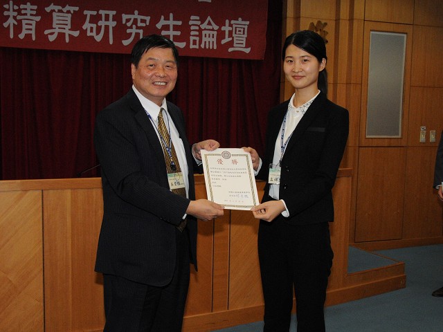 碩士生組論文佳作獎 - 東吳大學財務工程與精算數學系 張真榕 - 癌症患者之再罹癌風險研究並於論壇中頒發獎狀以茲鼓勵。