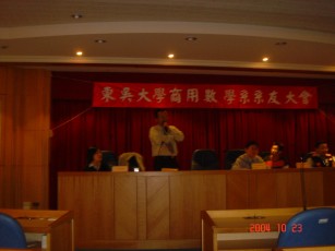十月二十三日星期六,輕柔的細雨洗淨清晨的天空,接著陽光露臉。東吳商用數學系系友大會在晚秋的晨陽中於城中校區熱烈地展開。一早報到時間開始前,系友們即已魚貫抵達,許多久未謀面的系友們在此次的活動中見了面,會場內外一片相見歡的景象,好不熱鬧。......{詳全文}