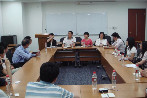 本次交流活動,5月27日(星期三)早上自桃園機場出發,於近午時分抵達上海浦東機場,由於H1N1檢疫過成繁瑣,故於下午約1點鐘方由復旦大學數學系李榮敏主任率領姚嘉祺及王倩兩位碩士生接機抵達復旦大學燕園賓館入住。一行抵達賓館時,尚漢冀老師已等候多時,經過簡單的用餐與梳洗後,隨即安排喬治華與莊聲和兩位老師,於燕園賓館會議中心發表全民健保資料庫之相關論文,有多位上海學界人士及台灣首席代表蒞臨聽講,並於會後由復旦大學舉辦一場交流餐會,就發表之主題內容做更進一步之交流與討論。