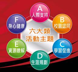 國內外許多高等教育實證研究指出,大一是銜接高中轉換至大學生活最重要的一年,其中最關鍵的轉換期是入學前兩週到第六週。有鑑於此,本校學生事務處自98學年度起辦理進學輔導活動,至99學年度更完善規劃新生定向輔導系列活動(Orientation service),結合教務處及各學系,規劃包含「人際支持類」、「校園認同類」、「學習促進類」、「生涯規劃類」、「資源瞭解類」及「身心健康類」等活動,如圖1。